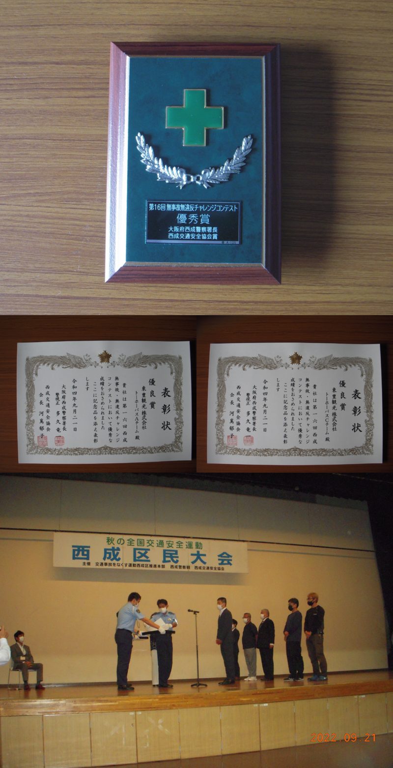 第16回「大阪府無事故・無違反チャレンジコンテスト」において表彰を受けました